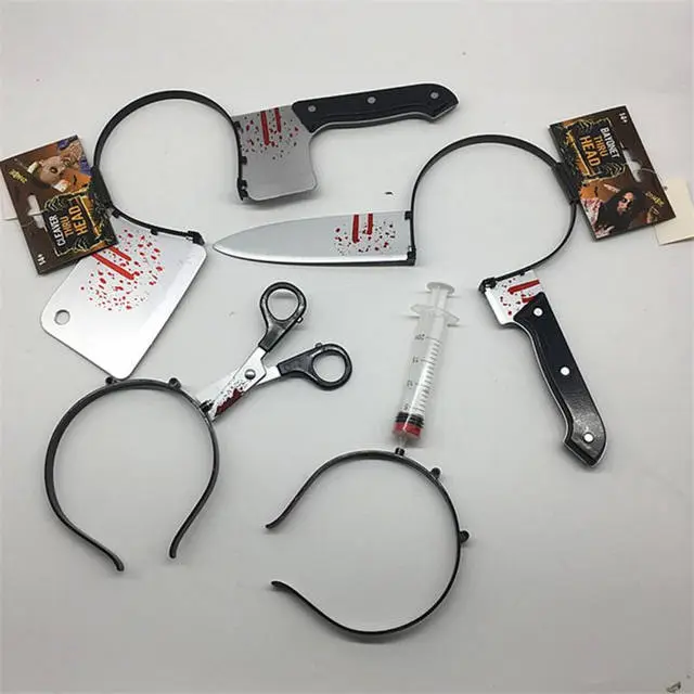 Halloween three-dimensional hair accessories tidy simulation toy plastic head knives scissors Halloween decoration props 2019