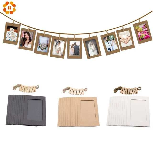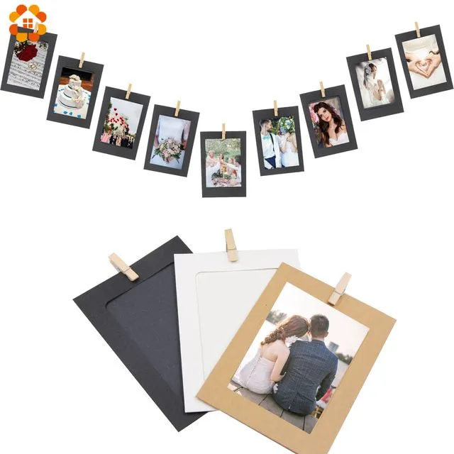 10PCS/set DIY Photo Frame Wooden Clip Paper Picture Garland For Wedding Baby Shower Birthday Party Photo Booth Props Decoration