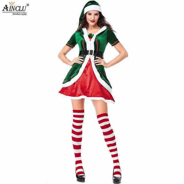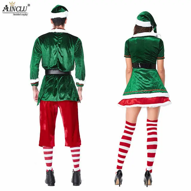 Ainclu Christmas Adult Womens Men Prestigious Santa Claus Helper Green Holiday Elf Christmas Cosplay Costume Sweet Dress Suits M-XXL