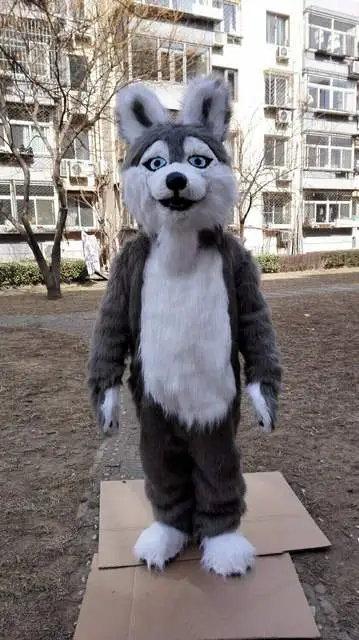 Cosplay&ware Fursuit Long Fur Wolf Fox Dog Mascot Costume Suit Cosplay Party Game Animal Fancy Dress Outfit Halloween Adult Size Parade