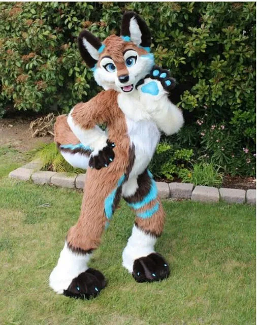 Cosplay&ware Halloween Long Fur Fox Dog Wolf Fursuit Mascot Costume Brown Suits Outfits Cosplay Party Game Dress