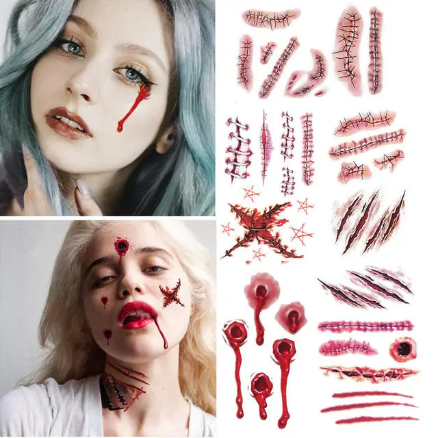 Cosplay&ware Halloween Party Decoration Zombie Scars Tattoos With Fake Scab Bloody Makeup Wound Scary Blood Injury Sticker
