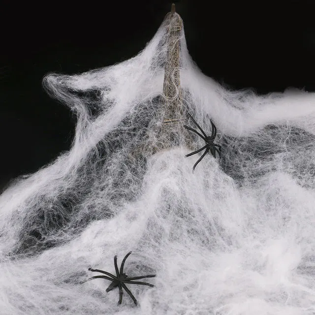 Halloween Scary Party Scene Props White Stretchy Cobweb Spider Web Horror Halloween Decoration For Bar Haunted House
