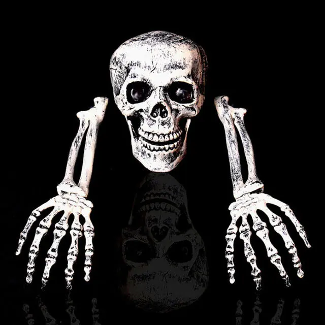 Cosplay&ware Skeleton Christmas Prop 100% Plastic Lifelike Human Bones Skull Figurine Horror Halloween Party Decoration