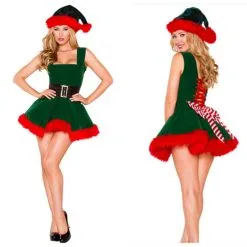 Cosplay&ware Eraspooky Christmas Costume Miss Santa Dress Women Elf Hat Coat Shoes Set Cosplay