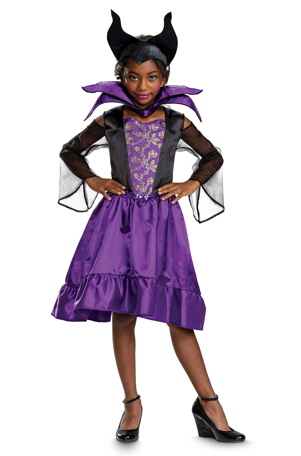 Whether you think Maleficent is a truly evil being and deserves everything she had coming or that she’s just terribly misunderstood, there’s no denying that she was a truly iconic Disney villain. Now you can dress up as this infamous baddie with this Maleficent Classic Child Costume which features a purple and black dress with a floral middle panel, attached mesh sleeves with shoulder cutouts, separate dramatic purple collar, and black horn headband.